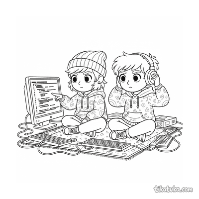 As páginas para colorir deste porão incluem duplas de hackers em terminais retro, DJs produzindo música em estúdios improvisados e clubes de criptografia resolvendo enigmas. Você também encontrará colecionadores de computadores antigos, artistas soldando placas de circuito e até um hacker com um jardim vertical entre os equipamentos. Todas as cenas são apresentadas com contornos nítidos em preto e branco, ideais para colorir. Com 78 desenhos disponíveis, você pode baixar e imprimir várias páginas de uma vez para criar uma sessão de colorir temática. As ilustrações são otimizadas para impressão doméstica, garantindo linhas limpas para um preenchimento fácil, seja com lápis de cor ou marcadores.