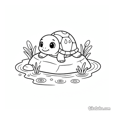Pequena Tartaruga Tomando Sol na Pedra do Riacho