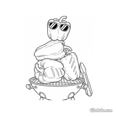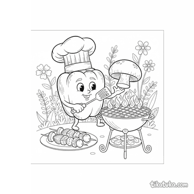 Aqui você encontra pimentões sendo grelhados, cortados em tábuas e espetados para churrascos. Há também cenas divertidas, como barcos feitos de legumes com marinheiros de pimentão e espetos de pimentão dançantes, que estimulam a criatividade das crianças. Todos os desenhos têm contornos nítidos em preto e branco, ideais para imprimir em casa ou colorir diretamente na tela. É uma forma prática de ter uma variedade de atividades artísticas sobre este tema sempre à mão.