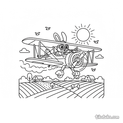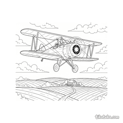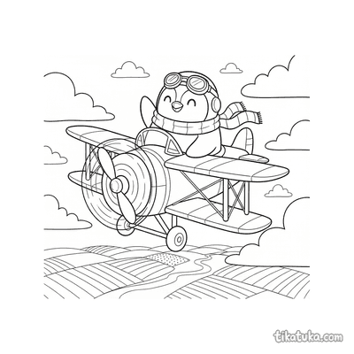Encontre biplanos dos anos 1930 voando sobre colinas onduladas, cidades antigas e ilhas tropicais. Cenas incluem o Pinguim Marcel pilotando sua aeronave e um biplano pulverizador em voo ao pôr do sol. Todos os 21 desenhos apresentam traços limpos e bem definidos, ideais para serem impressos em lote para uma tarde de atividade. As crianças podem colorir online ou baixar os PDFs para explorar diferentes cenários de aviação com seus lápis de cor.