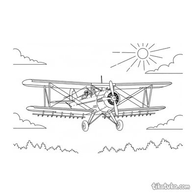 Esta coleção reúne desenhos de biplano, uma aeronave clássica com duas asas. Os contornos em preto e branco capturam a elegância vintage destes aviões históricos.