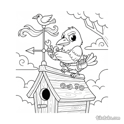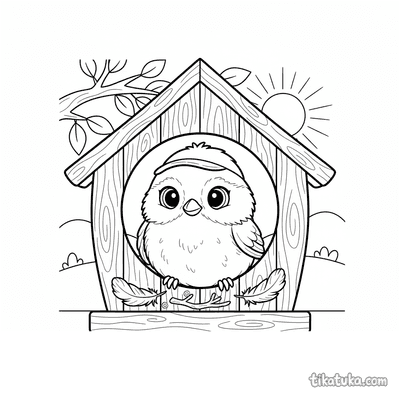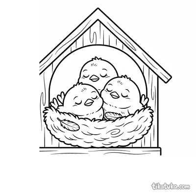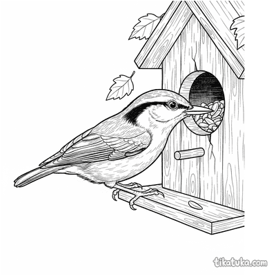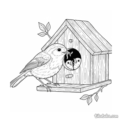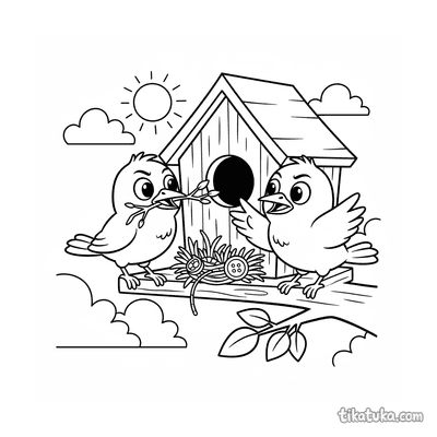 As ilustrações incluem cenas como uma menina construindo ou consertando uma casa de pássaros, e famílias de pardais e outras aves, como chapins, pica-paus e estorninhos, interagindo com suas moradias. Você pode baixar e imprimir estas páginas com traços nítidos em preto e branco. É uma ótima opção para imprimir várias cópias de uma vez para atividades em grupo, explorando o tema da natureza e dos pássaros.
