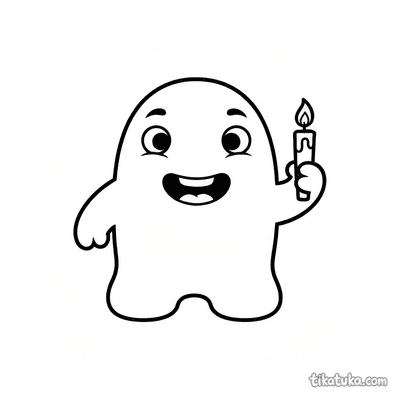 Uśmiechnięty potwór-kleks z świeczką urodzinową