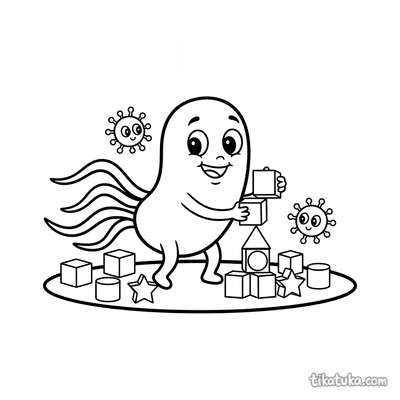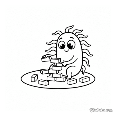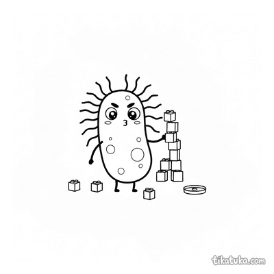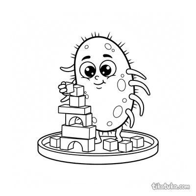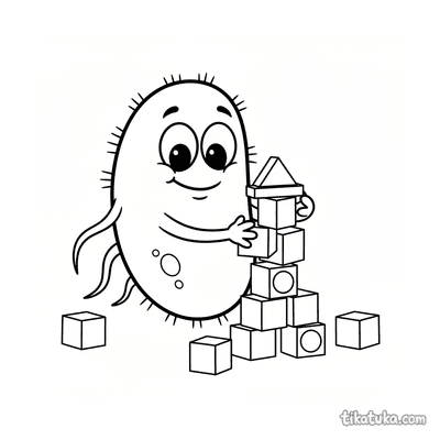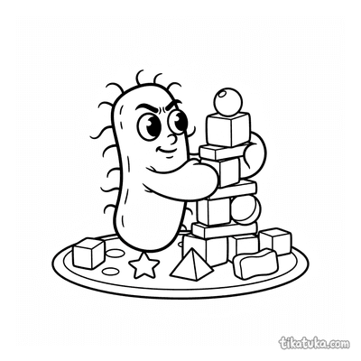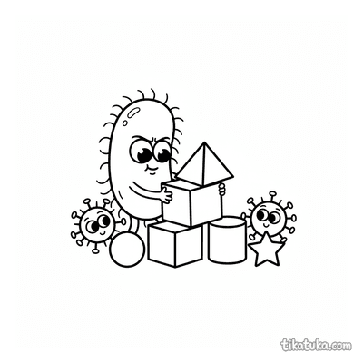 Aqui você encontra cenas de bactérias e micróbios construindo torres de blocos, torrezinhas e estruturas com cubos de açúcar ou proteína. Cada ilustração em preto e branco tem contornos nítidos, ideais para as crianças colorirem com lápis ou giz de cera. Você pode baixar todas as 24 páginas de uma vez ou imprimir apenas as favoritas para horas de diversão offline, sem precisar de internet.