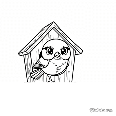 Chapim espreitando da casa de pássaros