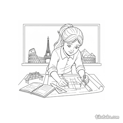 Aqui você encontra plantas de arquitetura, como casas de gengibre e cidades de cristal, além de plantas de veículos como hidroaviões e rebocadores. Cenas de personagens, como o biólogo estudando um terrário ou o estudante arquiteto desenhando na carteira, também fazem parte desta seção. Todas as 41 páginas para colorir estão disponíveis para baixar e imprimir em casa.