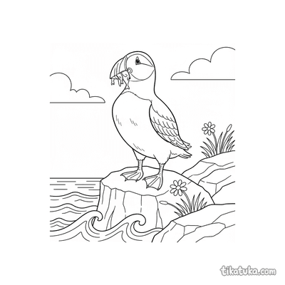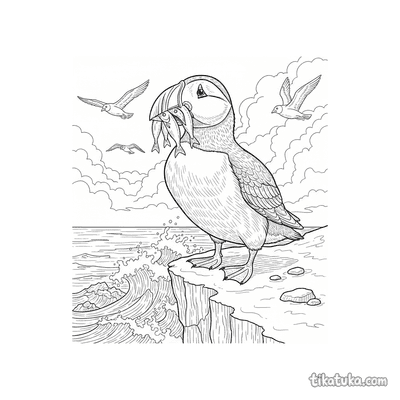 Os desenhos desta página capturam cenas à beira do penhasco, como papagaios-do-mar com peixes no bico e falcões pousados nas bordas rochosas sobre o oceano. As paisagens destacam a textura das rochas e a altura dessas formações naturais. Todas as 32 páginas para colorir de penhasco estão prontas para imprimir em casa, com traços limpos que facilitam o preenchimento. É uma seleção variada para explorar diferentes cenários naturais e suas criaturas.