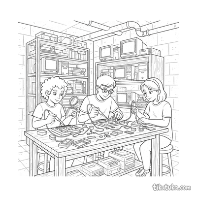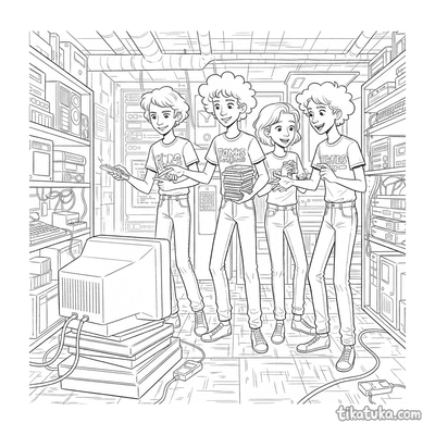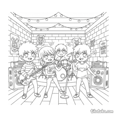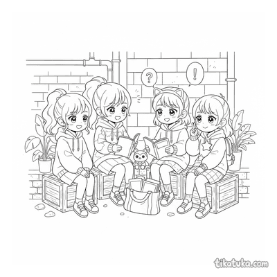 Aqui você encontra cenas de clubes de música, com bandas ensaiando no porão ou crews de hip-hop dançando. Também há encontros de clubes de anime, onde amigos relaxam ou decoram marmitas bento, e reuniões de clubes de computadores retro consertando hardware. Não faltam momentos de clubes de criptografia resolvendo enigmas e quebra-cabeças em seus encontros. Estes desenhos em preto e branco têm contornos nítidos, ideais para imprimir em casa ou na escola. Você pode baixar e imprimir todas as 12 páginas de uma vez para ter atividades de colorir para toda a turma do clube.