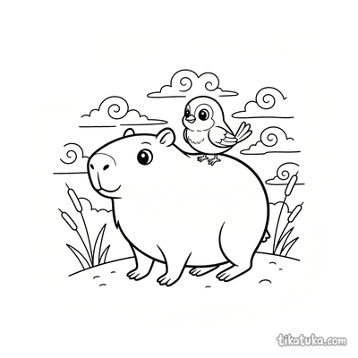 Capivara e pássaro ao pôr do sol