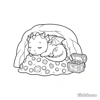 Bebê Dragão Dormindo no Tesouro de Gemas