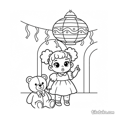 Menina Pequena Apontando para uma Lanterna Pendurada