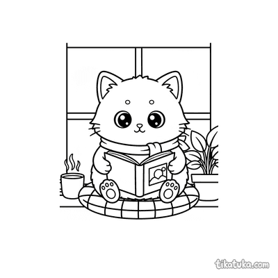 Gatinho Lendo Livro no Cantinho Aconchegante