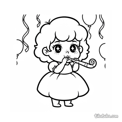 Menininha Tentando Soprar um Buzina de Festa