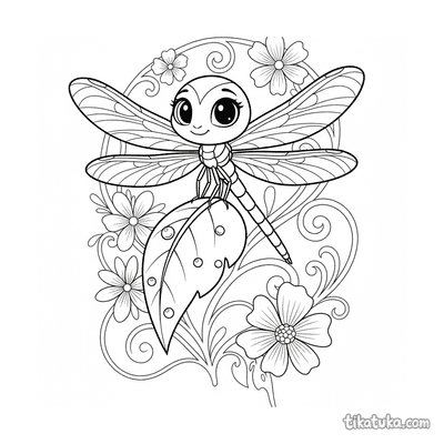 Libélula pousada na ponta de uma folha com orvalho