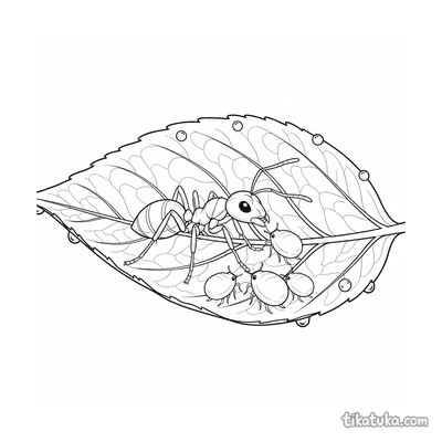 Formiga pastora de pulgões em folha com orvalho
