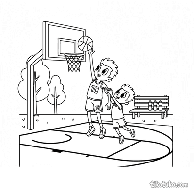 Aqui você encontra cenas vibrantes de esportes e ações, como um jogador de basquete fazendo uma enterrada, um tenista sacando a bola ou um monster truck pulando sobre uma poça de lama. Também há elementos divertidos como um triciclo de sorvete vintage, um árbitro anunciando a pontuação e até um juiz de linha robô. Todas as nossas páginas para colorir de quadra têm contornos nítidos em preto e branco, ideais para imprimir em casa. Você pode baixar as imagens individualmente ou imprimir várias de uma vez para criar um pacote de atividades sobre o tema.