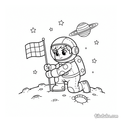 Menino Astronauta Plantando uma Bandeira em uma Cratera