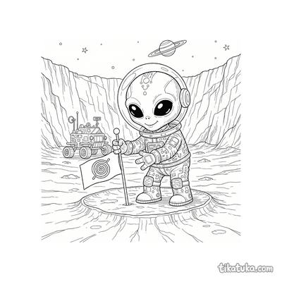 Explorador Alienígena Plantando uma Bandeira na Lua