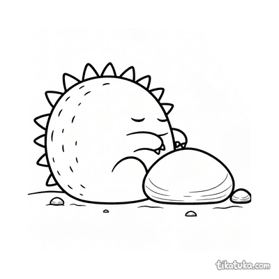 Kolczasty potwór drzemiący przy gładkim kamieniu