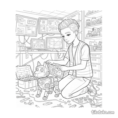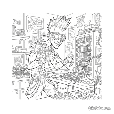 Aqui, as crianças encontram uma variedade de cenas inspiradas no universo cyberpunk. Elas podem colorir estilistas com seus robôs de estimação, entregadores em trajes especiais percorrendo a cidade de néon, ou programadores trabalhando em racks de servidores. Há também aprendizes de ninja em ação, artistas de graffiti e streamers de moda, todos imersos nesta estética futurista. Todas as ilustrações estão em preto e branco, com traços limpos que facilitam o preenchimento com cores. Você pode baixar e imprimir qualquer uma das 23 páginas gratuitamente, seja para uma atividade individual ou para criar um pacote de atividades temáticas sobre este mundo tecnológico e urbano.