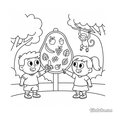 Crianças Comparando a Tabela de Dieta dos Macacos