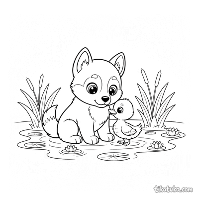 Husky Lutik Conhecendo um Patinho na Lagoa