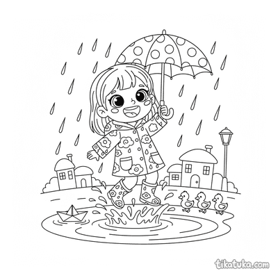 Menina de Capa de Chuva Pulando em Poças