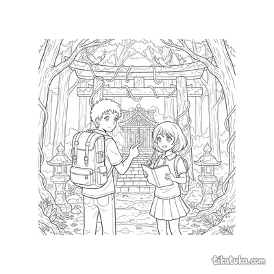 Dupla Anime Explorando um Santuário de Pedra Antigo