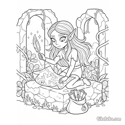 Aqui você encontra elfos em ações específicas, como um elfo espiando de dentro de um toco oco, um aprendiz misturando uma poção na torre ou um cartógrafo mapeando ilhas flutuantes. Cenas como um batedor montando um besouro gigante numa caverna de cristal ou uma elfa ajustando uma guirlanda festiva compõem este conjunto de ilustrações. Nossas páginas para colorir em preto e branco possuem traços limpos e bem definidos, ideais para serem impressas em casa ou na escola. Você pode baixar todas as 24 ilustrações de uma vez ou colorir online diretamente no site, explorando cada detalhe destas aventuras élficas.
