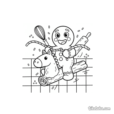 Biscoito de Gengibre Cavalgando um Cavalo de Canela em Pau