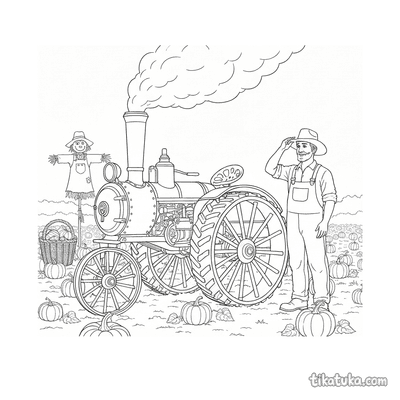 As crianças encontrarão aqui cenas com tratores a vapor antigos arando campos de trigo ou abóboras, fazendeiros ao lado de espantalhos e até personagens curiosos inspirados na vida da fazenda. Todos os desenhos estão em preto e branco, com traços nítidos, prontos para serem baixados e impressos em casa, ideais para uma tarde de atividades criativas.