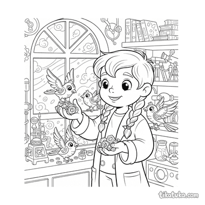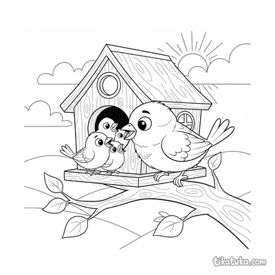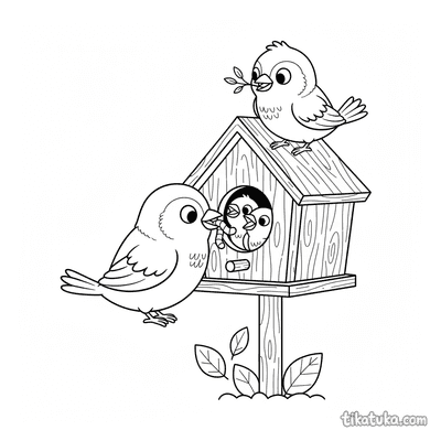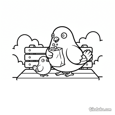 Aqui encontrará cenas como uma família de pardais na sua casa de pássaros, um avô e um neto a alimentar patos num lago, ou um pisco-de-peito-ruivo a levar uma minhoca ao ninho. Também há meninos a alimentar pássaros mecânicos e bebés a dar comida a aves no corrimão. Estas ilustrações em preto e branco têm contornos nítidos, ideais para serem impressas em casa ou na escola. Pode baixar todas as páginas de uma vez para ter uma atividade completa ou colorir diretamente no ecrã.