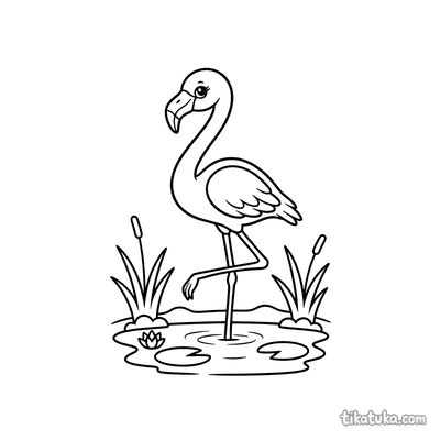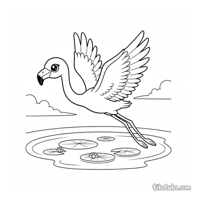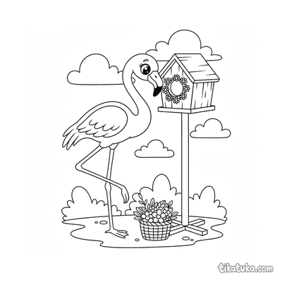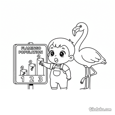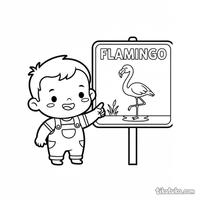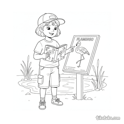 Nestas páginas, você encontra flamingos em momentos de descanso, muitas vezes equilibrados numa perna só, ou em voo sobre lagos. Há também cenas interativas onde crianças observam flamingos no zoológico, apontam para placas informativas ou comparam os animais com ilustrações de guias. Os desenhos incluem detalhes como casas de pássaros decoradas e cataventos com a forma de flamingo. Todas as 12 ilustrações estão disponíveis para baixar e imprimir em casa, com traços limpos ideais para colorir.