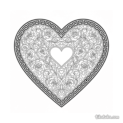 Mandala Coração com Vinhas Florais e Borda de Padrão Chave