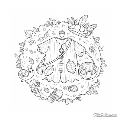 Roupa de túnica de duende da floresta sobre musgo com botões de bolota