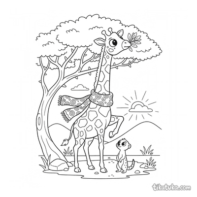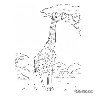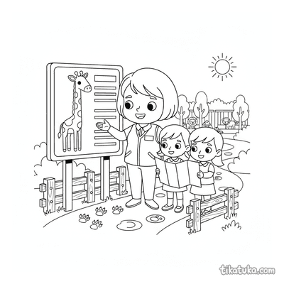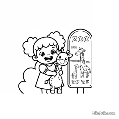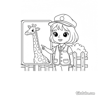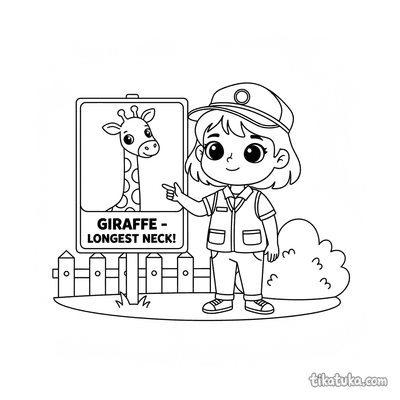 Aqui você encontra cenas variadas, como uma girafa alcançando folhas de acácia, um filhote curioso ou um tratador explicando uma placa informativa no zoológico. Cada página oferece contornos nítidos em preto e branco, ideais para imprimir em casa ou colorir diretamente no navegador, proporcionando uma atividade educativa e relaxante.