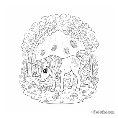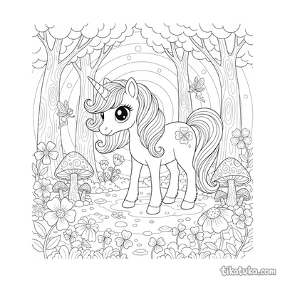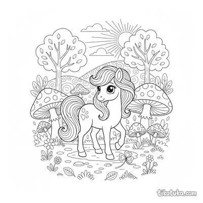 Pônei Unicórnio Mágico Pastando numa Clareira Encantada