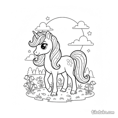 Pônei mágico com crina brilhante