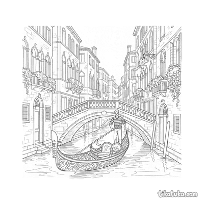 A gôndola é o emblemático barco de Veneza, conhecido pela sua forma elegante e passeios pelos canais. Esta coleção reúne desenhos em preto e branco que capturam a beleza deste símbolo italiano. As ilustrações apresentam a gôndola em diferentes cenários característicos.