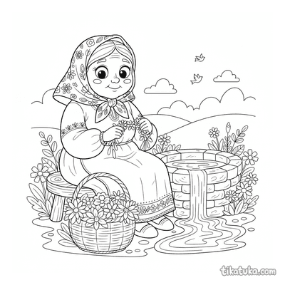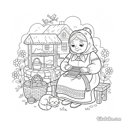 Avó Trançando uma Grinalda junto ao Poço