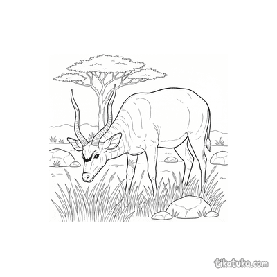Antílope Bongo Manchado Pastando na Savana Nebulosa