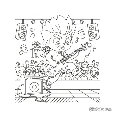 Páginas para colorir com a tag "Guitarrista" para crianças. Baixe e imprima grátis.