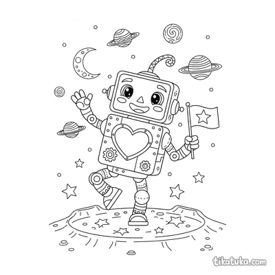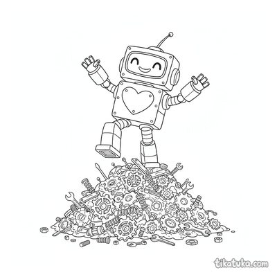 Entre as páginas, você encontra um balão de ar quente em forma de coração sobrevoando um prado, uma mandala decorada com corações, vinhas e flores, e até um robô amigável com um painel de coração no peito. Há também travesseiros em forma de coração com rostinhos e um potro de unicórnio interagindo com uma nuvem fofa em forma de coração. Todas as ilustrações estão em preto e branco, com traços bem definidos que são ideais para os pequenos artistas preencherem com cores. Você pode baixar e imprimir qualquer uma das 25 imagens gratuitamente, em casa ou na escola, para horas de diversão criativa.