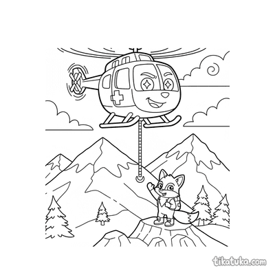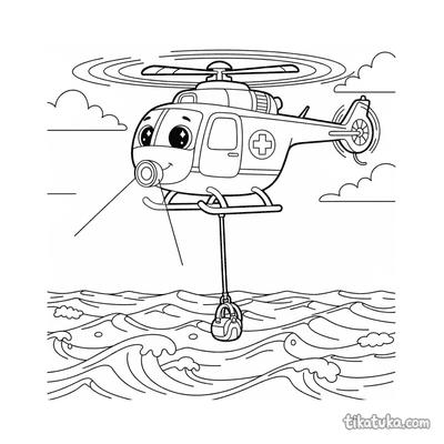 As páginas para colorir incluem cenas como um helicóptero de resgate nas montanhas nevadas, um pousando perto de um posto de comando e um mecânico verificando o rotor. Também há imagens de um helicóptero sobrevoando a cidade, uma estação de resgate flutuante e um modelo miniatura pousado numa vitória-régia. Você pode baixar e imprimir todos os 28 desenhos de uma vez para ter uma atividade sempre à mão. Os contornos são limpos e bem definidos, ideais para as crianças pintarem com lápis de cor ou giz de cera.