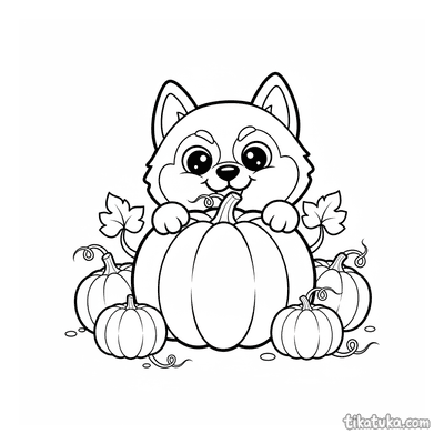 Husky Lutik Escondido em uma Plantação de Abóboras