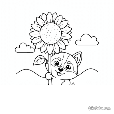 Husky Lutik escondido em um campo de girassóis