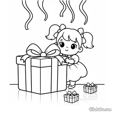 Menina se escondendo atrás de presente grande