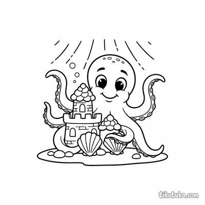 Polvo brincando de esconde-esconde no castelo de conchas