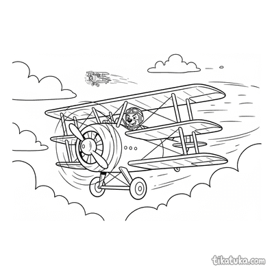 Triplano da Primeira Guerra em Combate Aéreo entre Nuvens