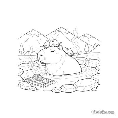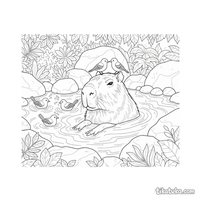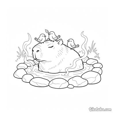 Os desenhos para colorir de fonte termal incluem cenas específicas como capivaras flutuando nas águas, acompanhadas de pássaros amigos. É um tema que combina natureza e tranquilidade, perfeito para explorar com lápis de cor. Temos 15 páginas para colorir sobre este tema, todas com traços nítidos em preto e branco. Você pode baixar e imprimir quantas cópias quiser, ideal para uma tarde de atividades criativas ou para usar em sala de aula.